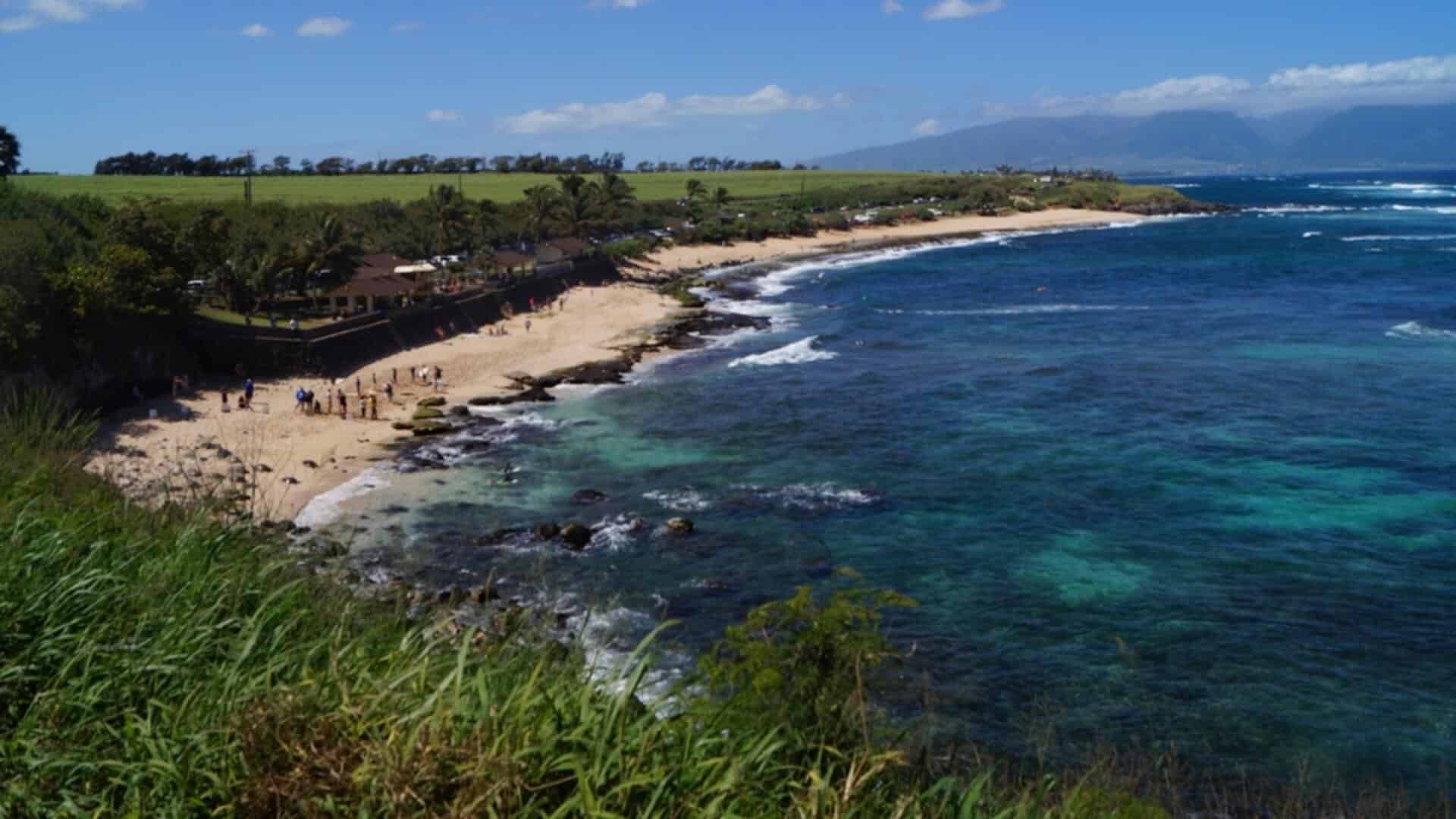 An aerial shot of Hookipa Beach Park in Maui