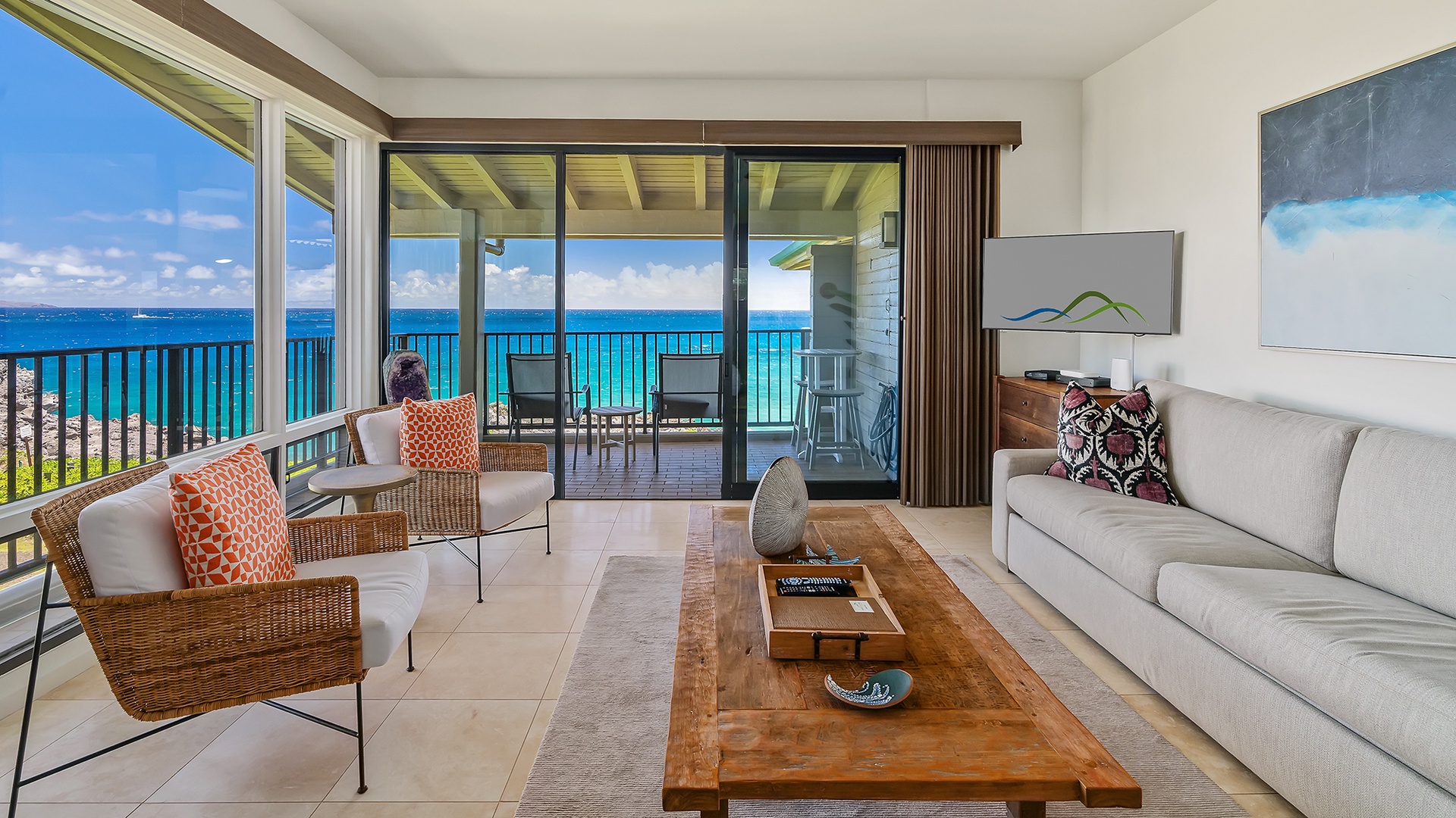 • Great room design – kitchen, dining and living room all with ocean views, access to covered ocean view lanai