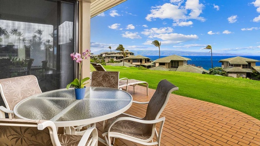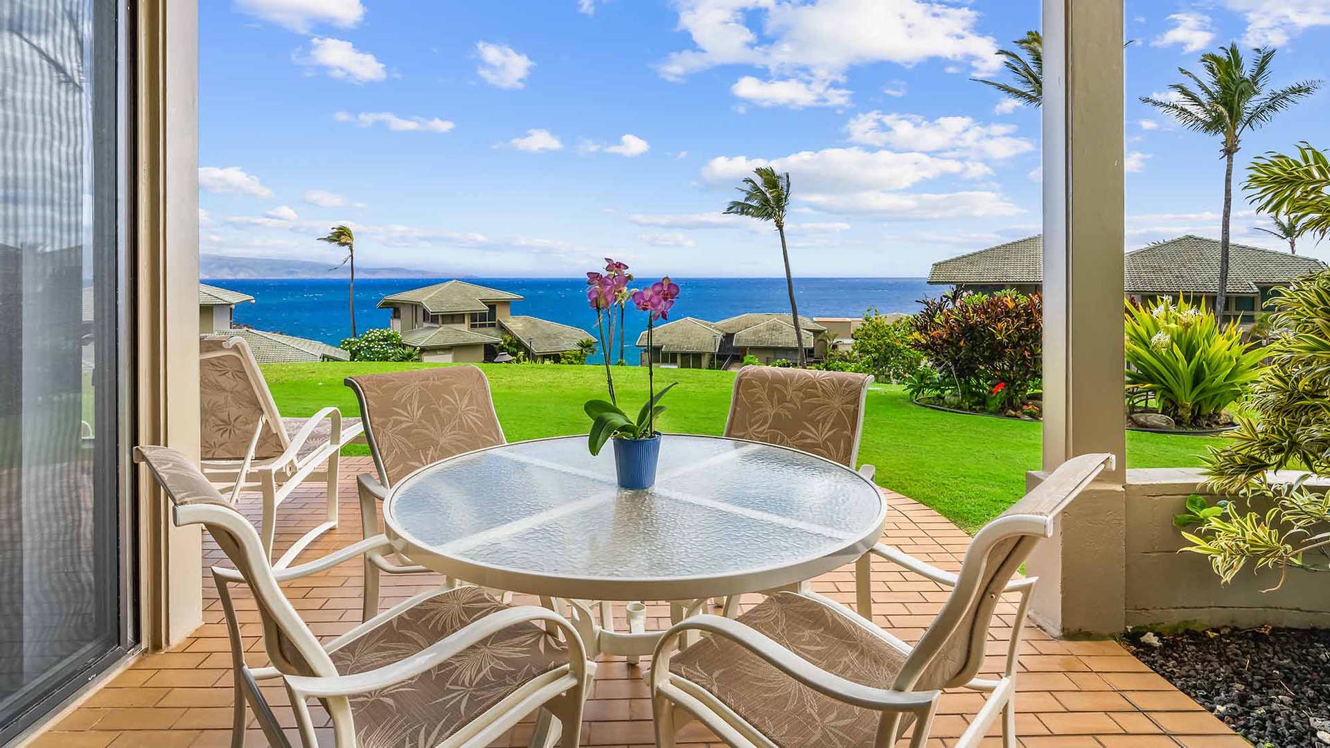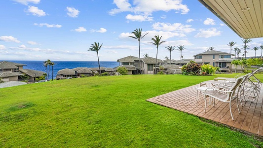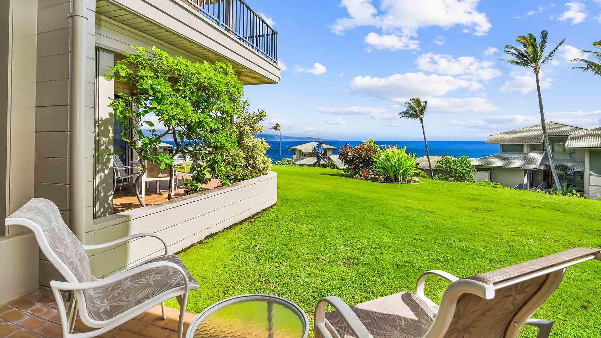 One of the largest Kapalua Bay Villa floor plans offering lanais off of each bedroom suite, this spacious ground floor villa has a covered dining lanai which opens up to a large grassy area, perfect for the little ones to play.