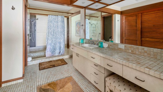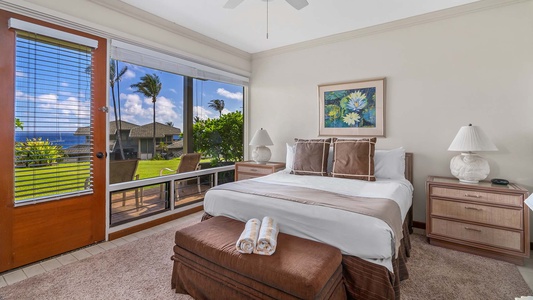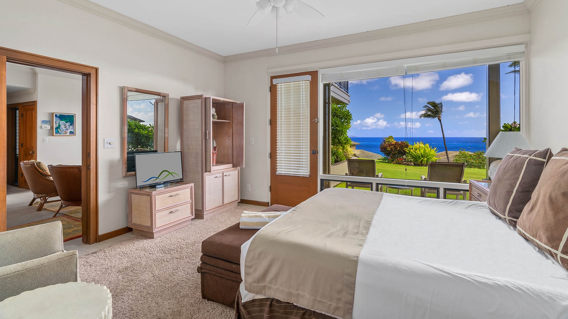 • Master Bedroom Suite – ocean view, AC, king bed, access to private ocean view seating lanai, full bath, tub with shower