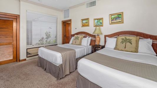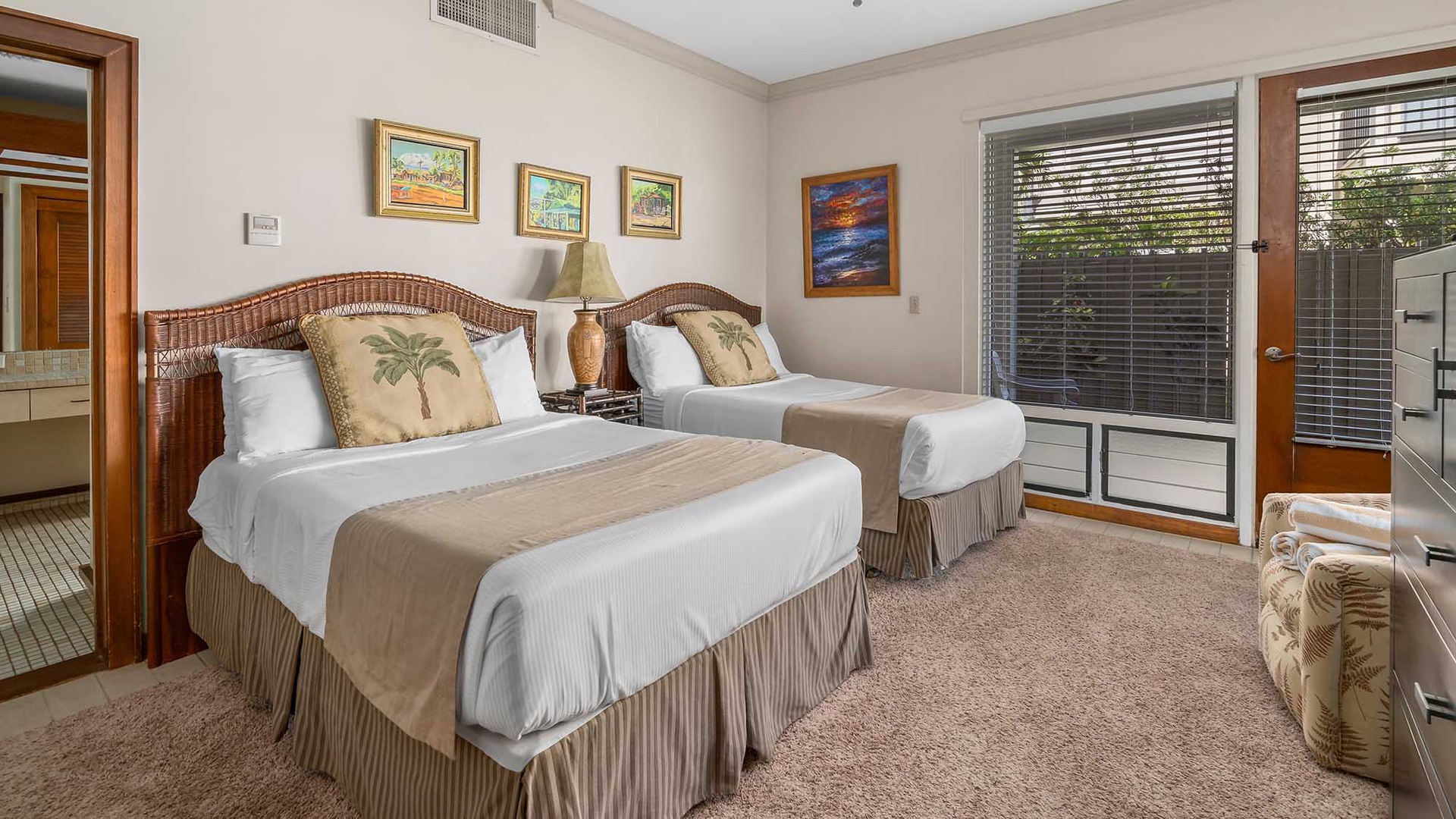 • Second Bedroom Suite – AC, two full beds, access to private ocean view seating lanai, full bath with walk-in shower