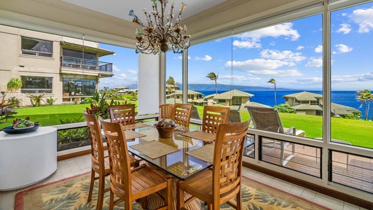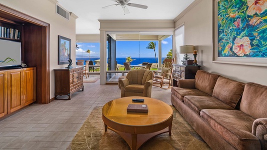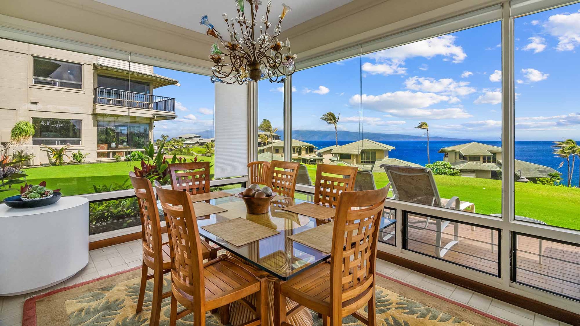 • Great room design – kitchen, dining and living room all with ocean views, access to oceanfront lanai