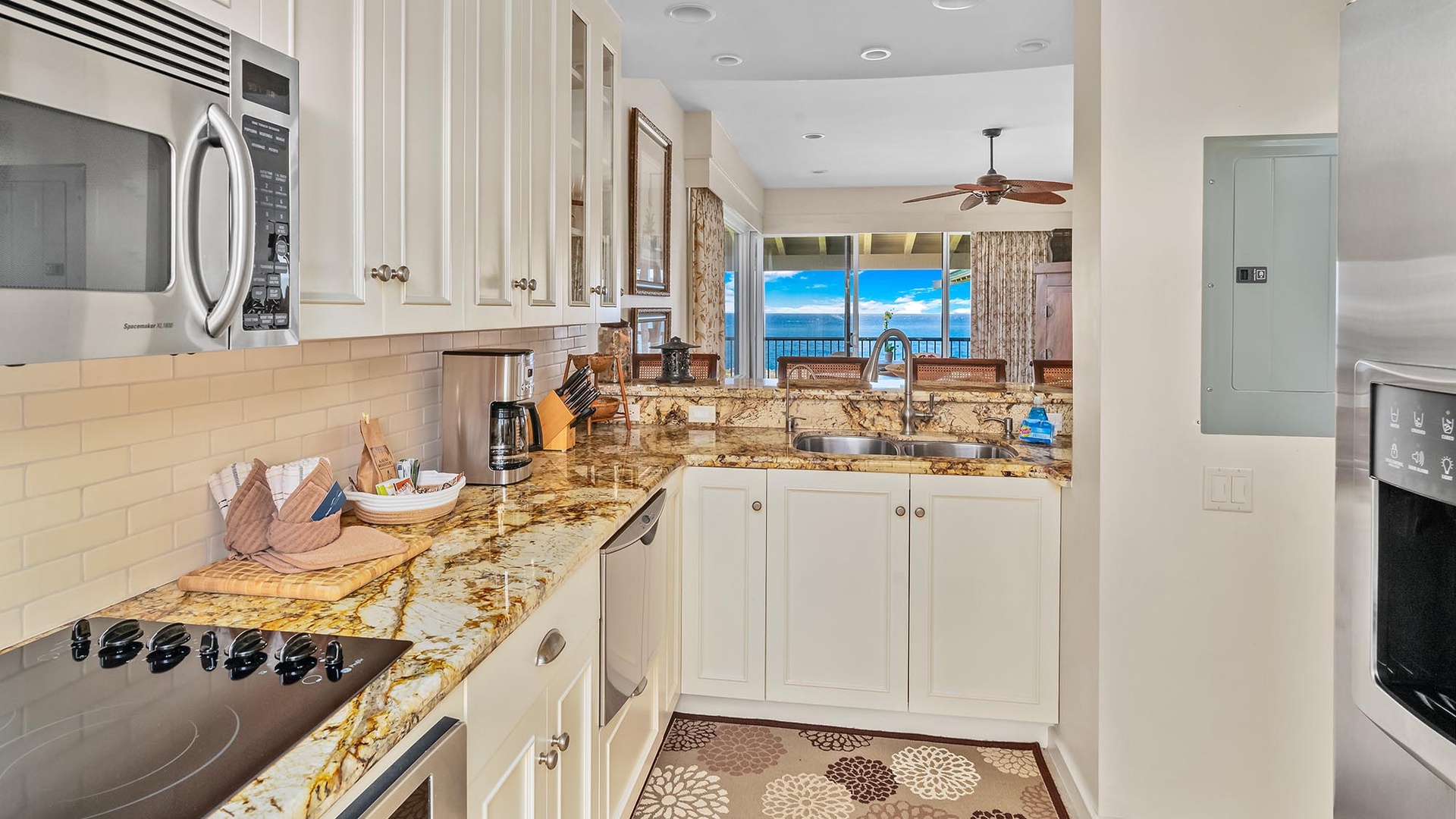 • Great room design – kitchen, dining and living room all with ocean views, access to ocean view lanai