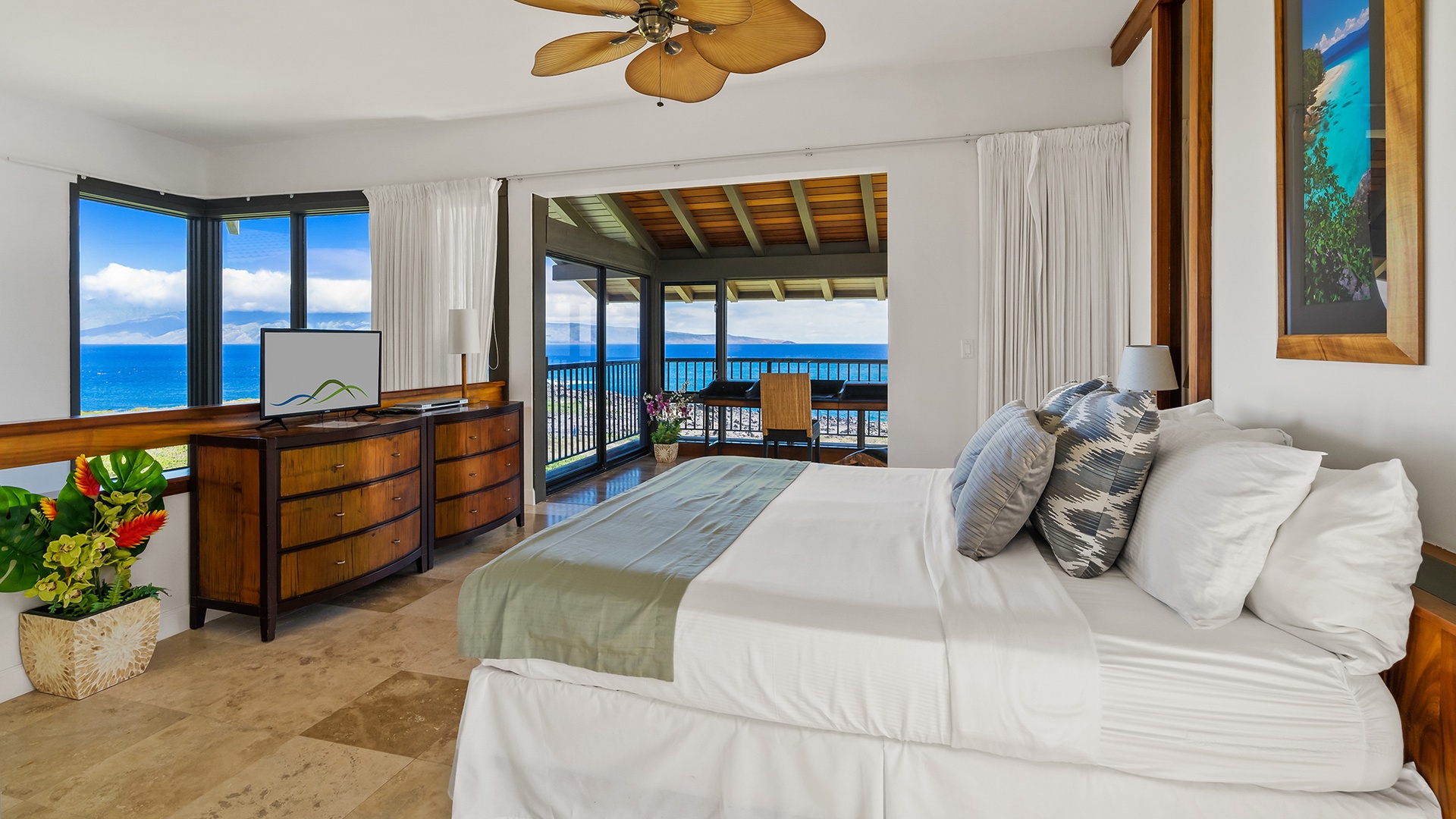 What makes this property even more special than the surrounding Bay Villas is that it is the furthest condo on the point giving us a 270 degree view of the ocean and Linai. You get both the sunrise and the sunset. The condo itself is really well appointed with plenty of nice dishes and cooking items to use the kitchen effectively. Plus, 3 bathrooms so that everyone gets some privacy. And the desk in the loft with the three sided windows is a perfect place to get some work done (if you have to) without feeling like you\'re working. Loved this place!