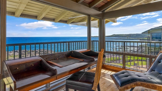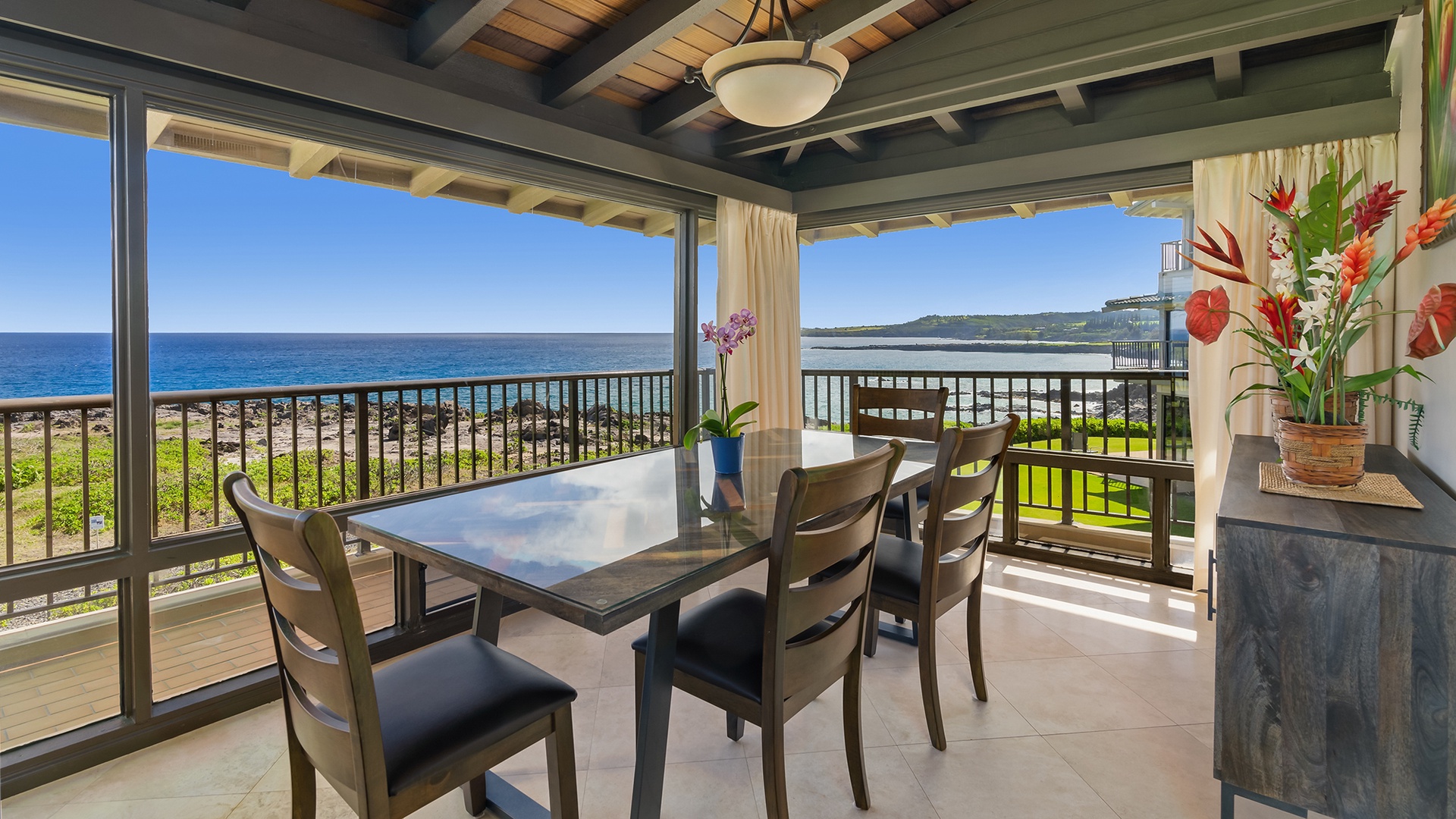 • Great room design – kitchen, dining and living room all with ocean views, access to covered ocean view lanai