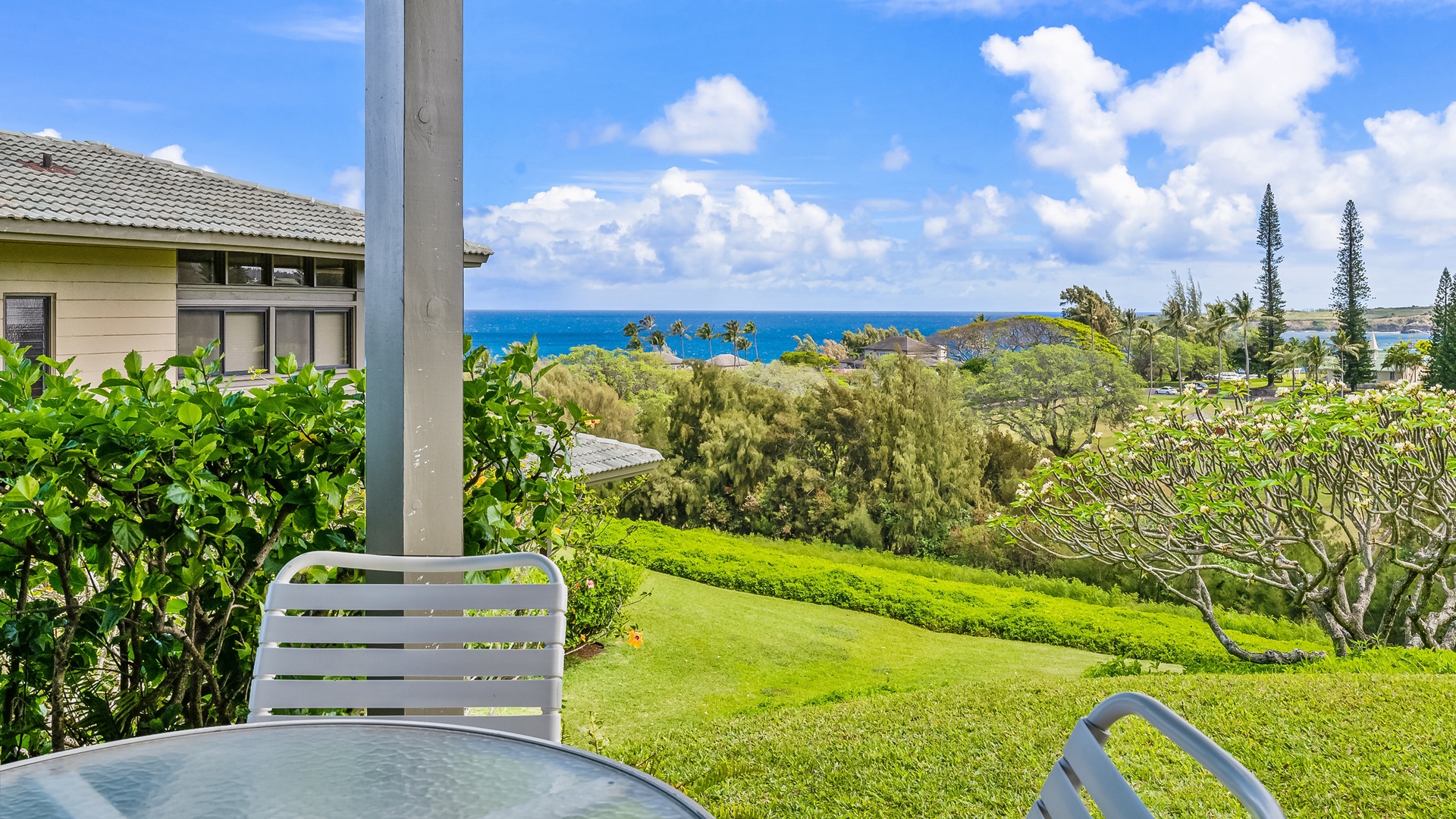 • Great room design – AC, kitchen, dining and living room all with ocean views, access to ocean view lanai
