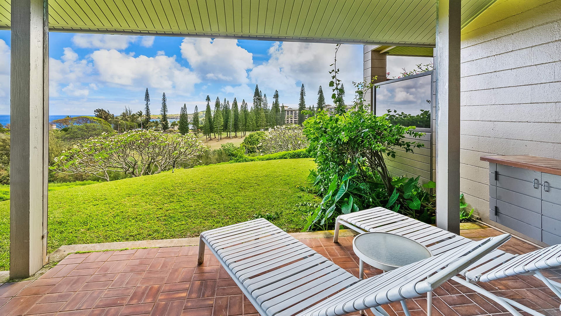 • Covered ocean view dining and lounging lanai
